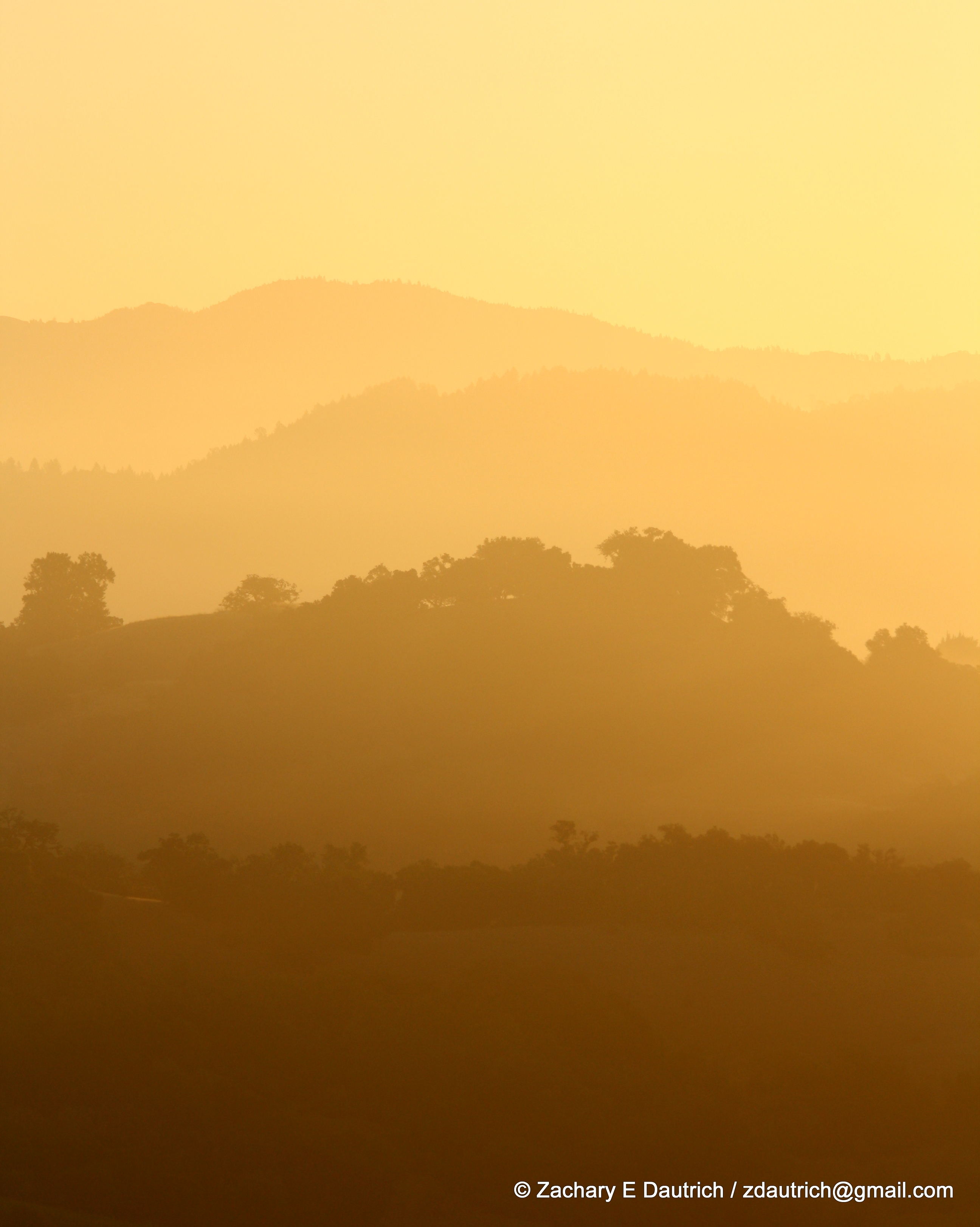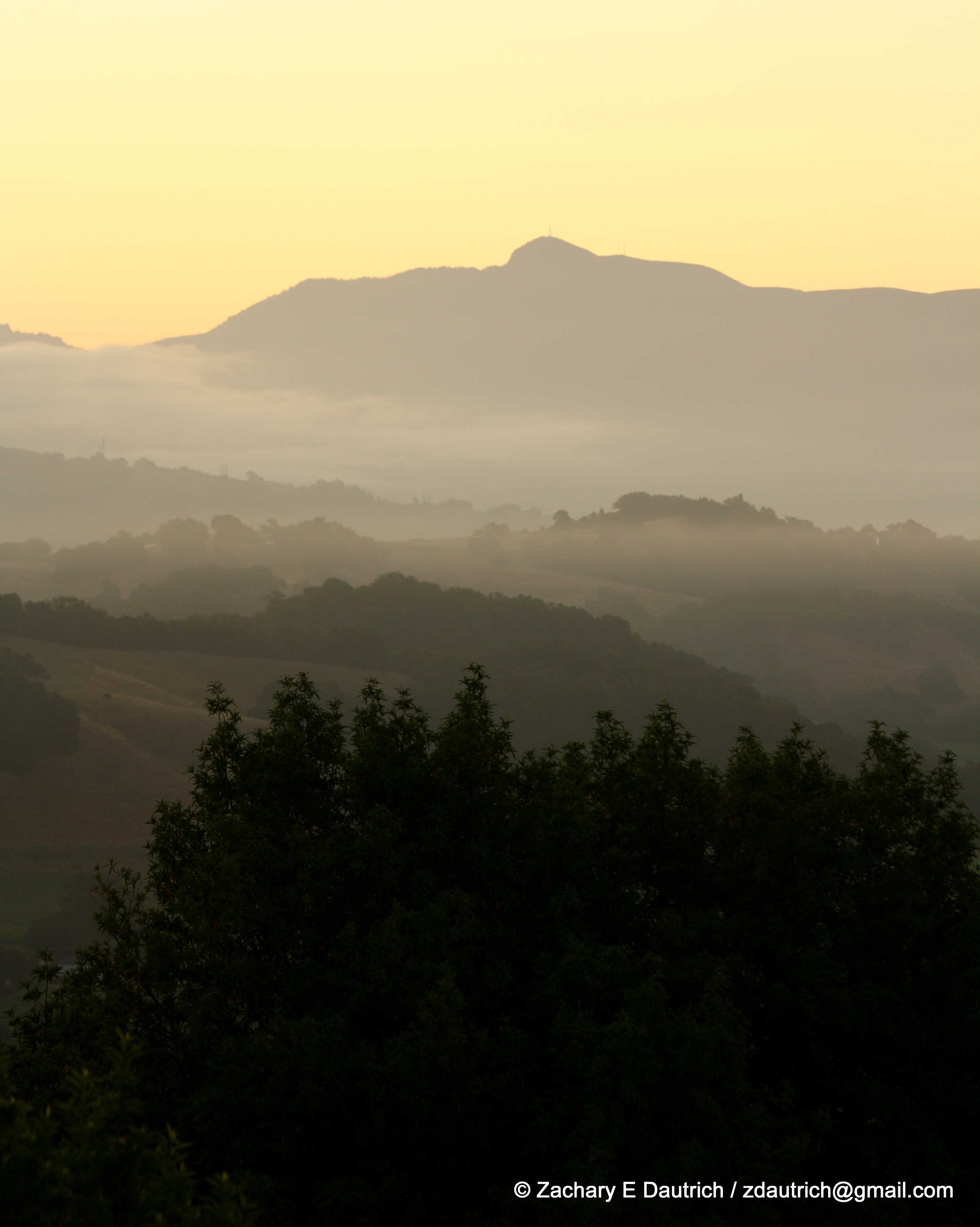 Fantastic morning views of the sun rise and moon set with Mt St Helena in the background to the East and the coastal range to the West, sitting atop the ridge above Healdsburg.