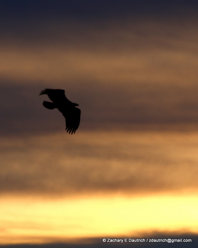 Though not a raptor, it was fun to see all of the ravens and crows that were flying around in the midst of all these raptors. It was typical to see ravens side-by-side with bald eagles eating a waterfowl kill. We also got a nice look at some tri-colored black birds.