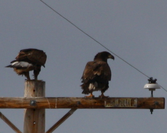 juvenile golden eagle (left) and juvenile bald eagle Butte Valley CA