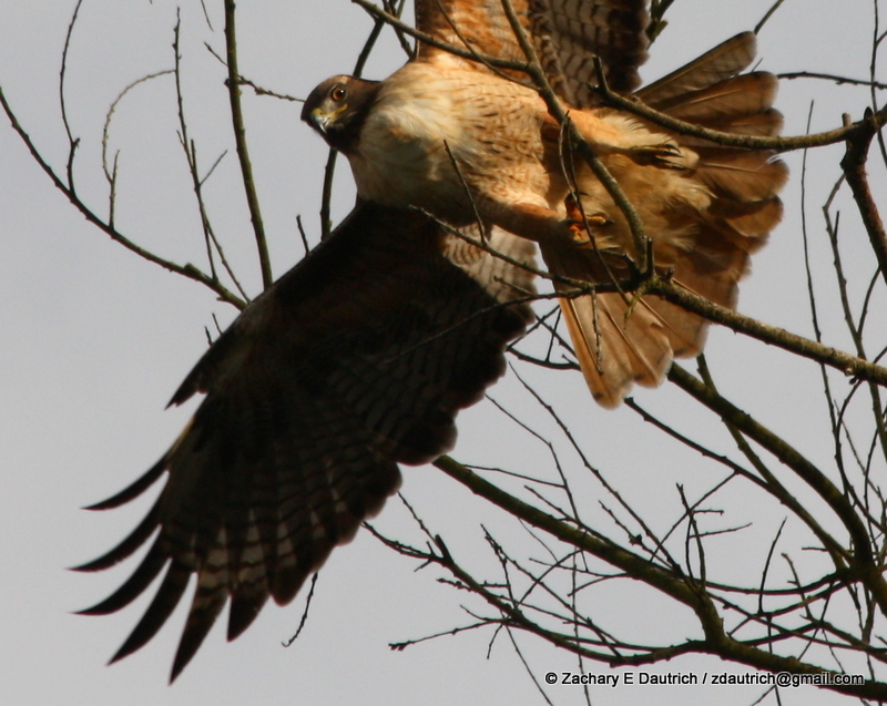 The GG bridge red-tail eventually gave up on the precarious branches in the high winds and sailed on to sturdier perches …