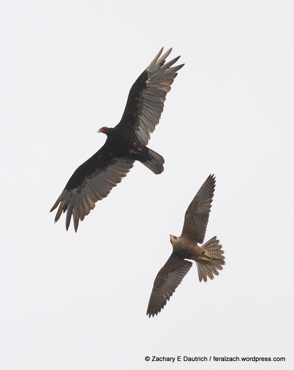 It’s amazing to see just how big the falcon is in comparison – I’m guessing it is one of the juvenile females. For anyone concerned, the turkey vulture escaped with just some ruffled feathers.