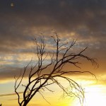 Klamath sunset – tree with bald eagle, red-tailed hawk, and a flock of red-winged blackbirds