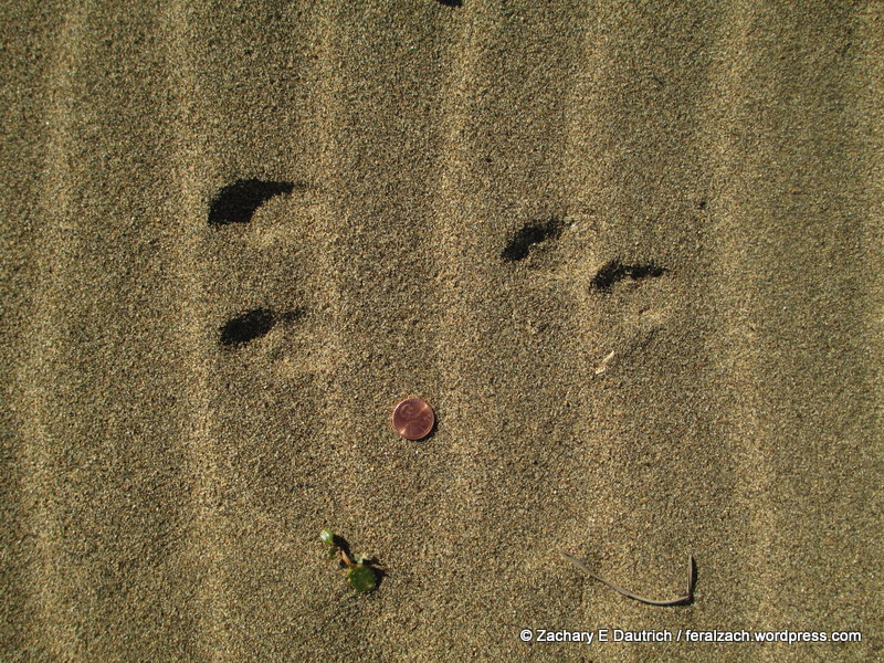 Sanderling trail (?) … though I’m open to other interpretations … and some faint deer Mice, Frog and insect trails – this was found in the lagoon sand dunes, far from the surf