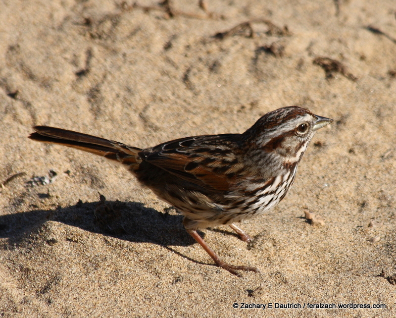 There were quite a few sets of trails and tracks on the dunes, but the striped skunks were most prevalent. This is their mating season, during which they really seem to be wandering around outside of their normal areas with higher frequency – sadly it is also marked by the large number of road kill skunks at this time of year. Notably absent was the female bobcat that usually patrols this area. It is also breeding season for the cats, so her daily patterns are likely interrupted by the breeding impulse. I also spotted at least one golden eagle soaring above the hills, only the second time I’ve seen one in this particular area. Along with a ferruginous hawk sighting (a somewhat rare winter visitor in this area) and the great view of an intermediate morph red-tailed hawk, we had some great raptor and other bird sightings. During the day at various times the family of otters was visible on the upper lagoon, but I never really was close enough for any pictures. Just their presence is a joy, watching them even from afar is so fun.