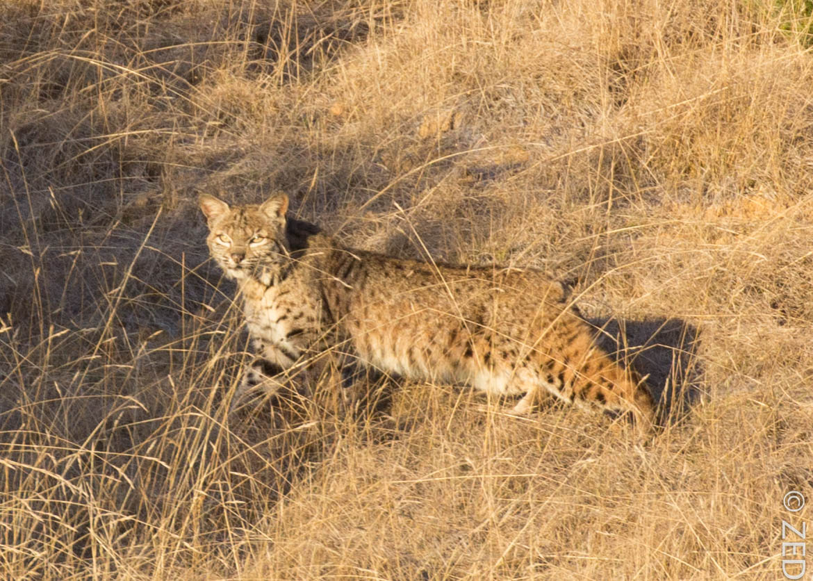 I’ve written before that in the northern part of Wildcat Canyon Regional Park, I have never seen definitive bobcat sign nor a live bobcat in the three years that I have been going there (ironic, given its name!!). My explanation was that due to the open grassland and minimal cover in this area (most of it is grazed by cattle for fire suppression), coyotes are the dominate predator because they can adapt to the terrain better. Between the lack of cover and proliferation of coyotes, it is not ideal bobcat terrain. Not only that, many people walk their dogs in this area, and again, coyotes are better equipped to deal with that scenario. Bobcats like to be near edges of vegetation, so they can easily “disappear” to escape threats. Further south in Wildcat Canyon, there are more chapparal and riparian zones with lots of cover, and sure enough I’ve found (and seen) bobcats and their sign there.