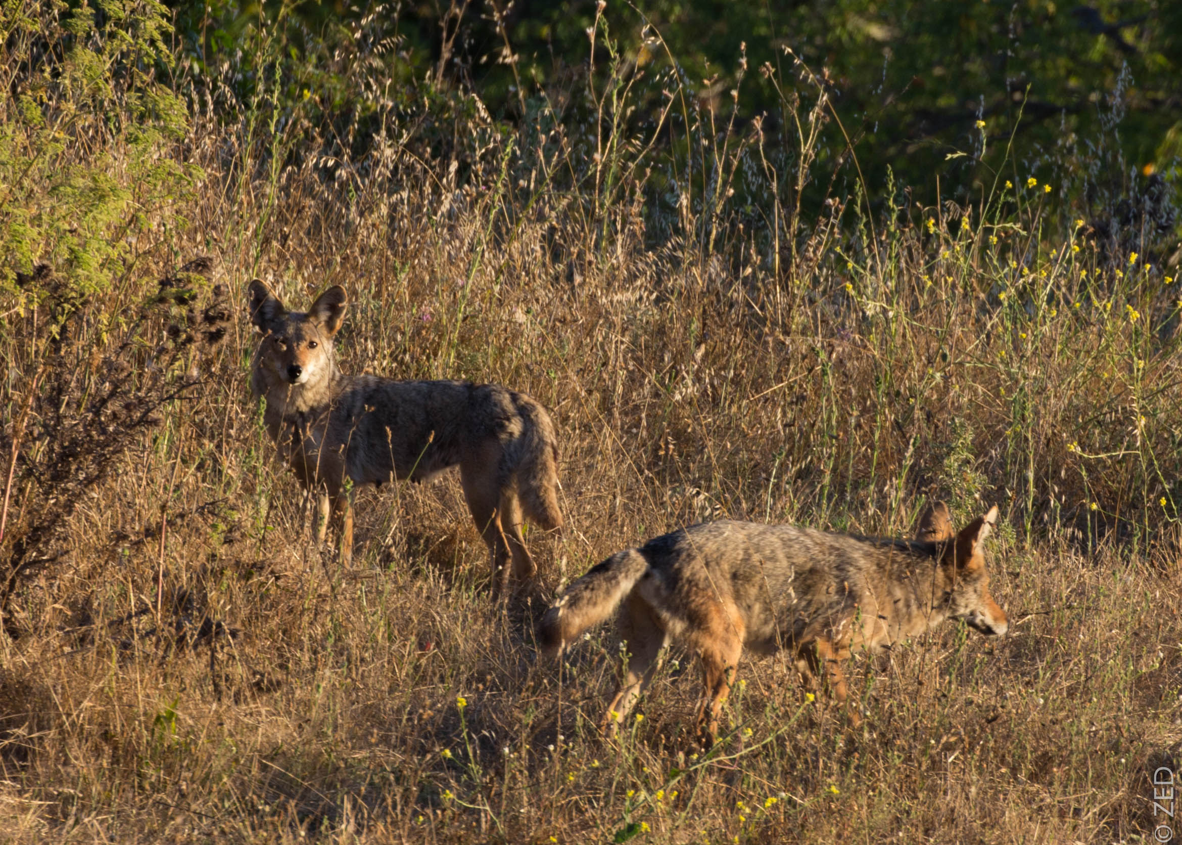 I came upon a new pair of coyotes today, and before we all saw each other, one of them started howling about 20 yards from me – at which point the valley I was in erupted with at least half a dozen answering howls, as well as some in adjacent valleys nearby. The pair was very surprised by my presence when we finally bumped into each other – it’s a relatively remote spot in the park.