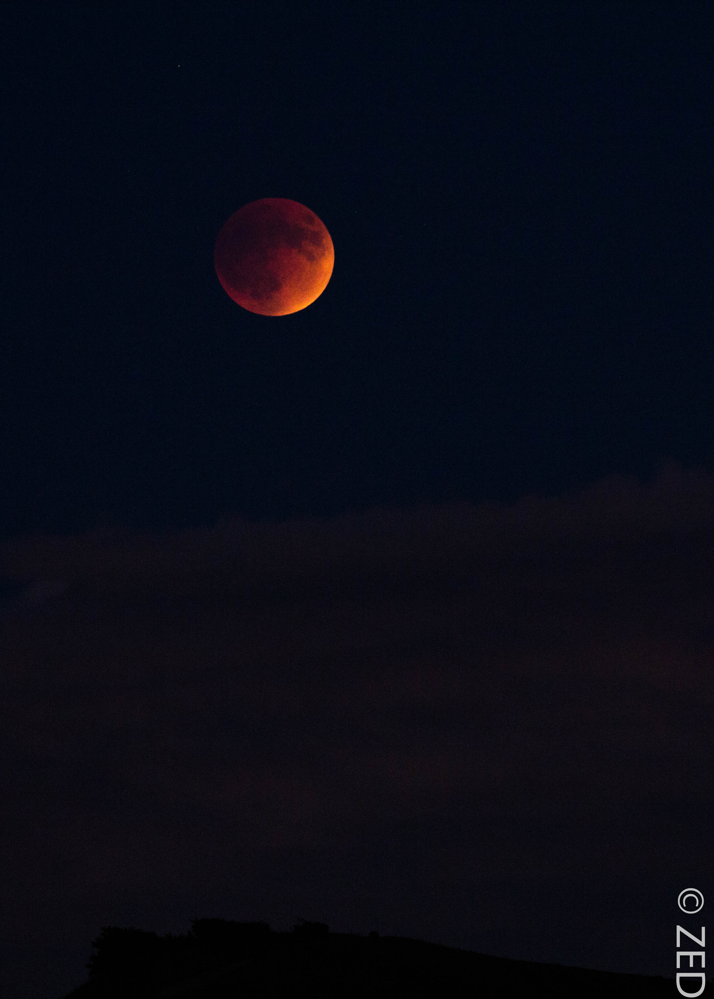 These shots below were taken while the moon was still fully eclipsed, not long after it finally rose above the clouds that obscured its initial rise …