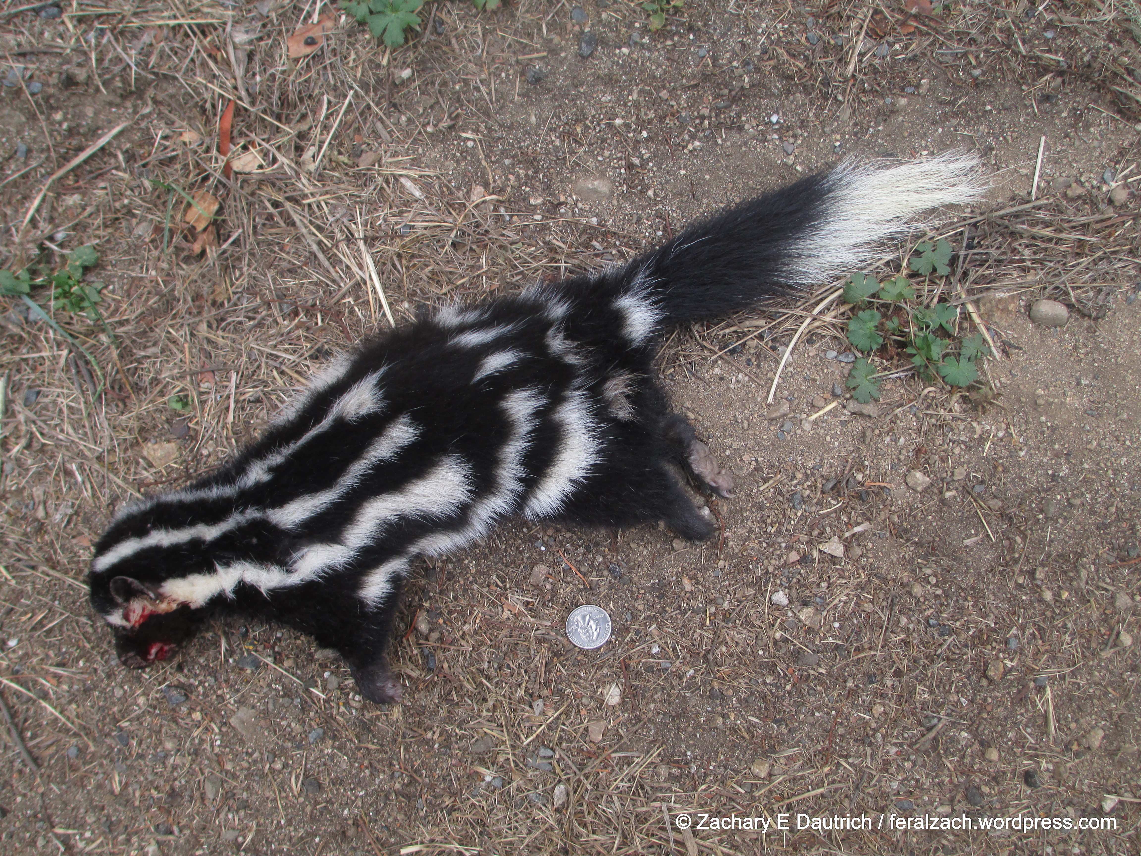 The rare spotted skunk made itself know a number of times one day a few weeks ago out at Point Reyes National Seashore … sadly one of them was road kill. But, it offered a chance to really check out it’s feet (which, consequently, I paid for by having a smelly hand for three days). They are smaller than the striped skunk, but equally as smelly. Very cute though.