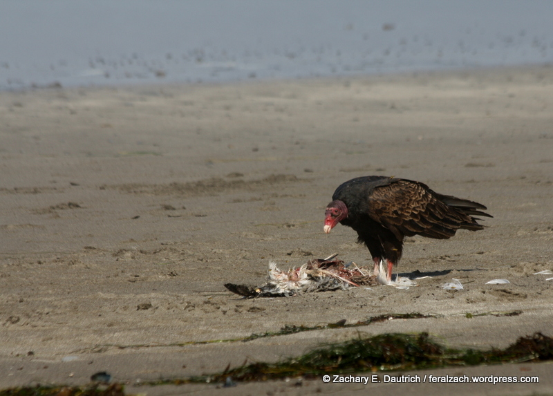 turkey vulture eating gull