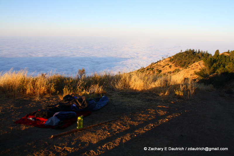 The stars twinkled at our feet above the layer of fog that was blanketing the ocean which lay thousands of feet below us, as the moon climbed higher in the sky behind our heads. A great-horned owl hooted to us in the distance, as we struggled to close our eyes to the beauty all around us so we could get some rest. In contrast to the cold damp foggy air below us on the coast, it was warm and still where we laid, with almost no need for covers. And certainly no need for a tent, which would only serve to obscure the view. It was so bright I could have read a book by the moonlight.