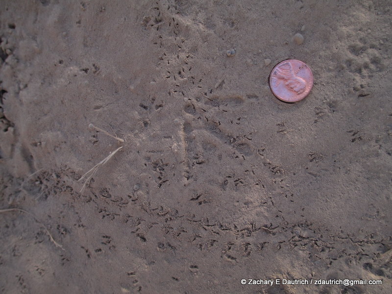 We wandered around a bit before we left the area, going out west to the farthest point on one of the “fingers” of the mountain that stretched out towards the sea. The views were tremendous, both near and far. This one square foot of fine dust on the trail held so many tracks it was mind boggling, including those of rodents, insects, birds and a gray fox.